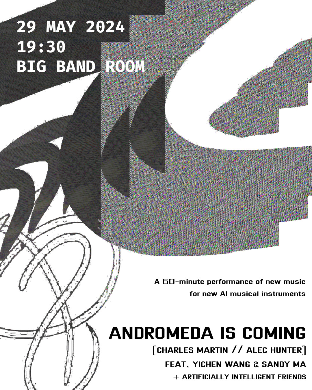 A 60-minute performance of new music for new AI musical instruments featuring Alec Hunter, Charles Martin, Yichen Wang and Sandy Ma.