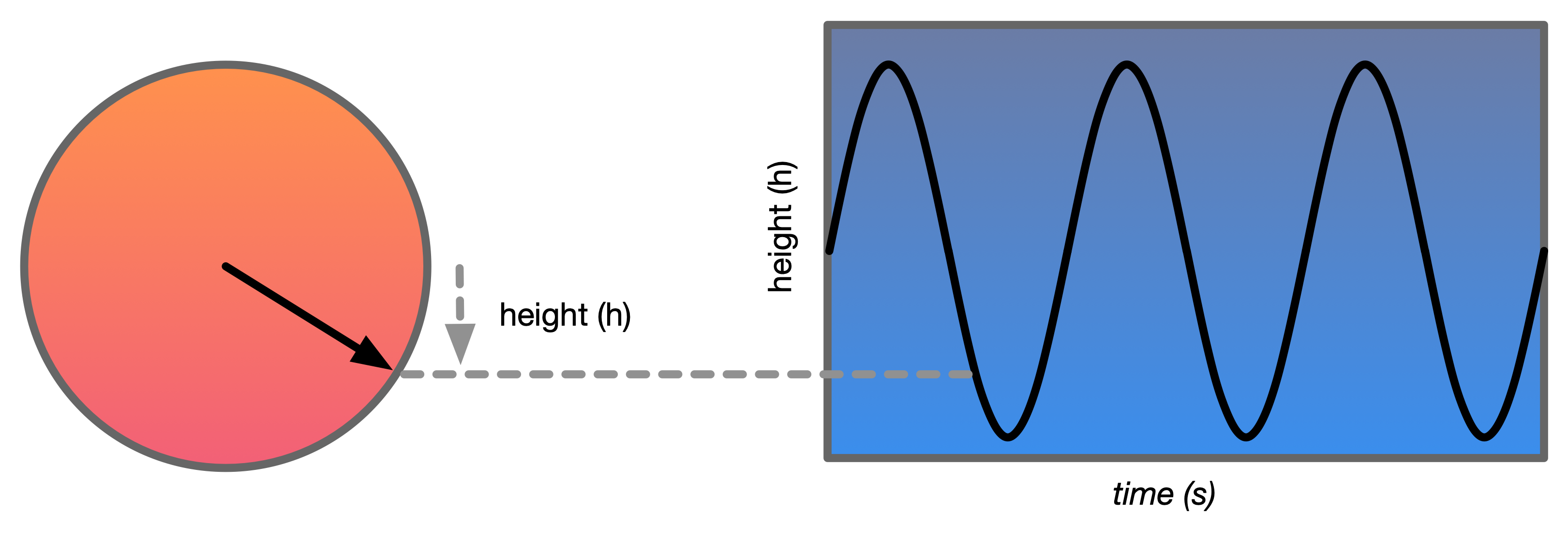 We can write down the height as a function: $h(t) = sin(2 \times \pi \times t)$
