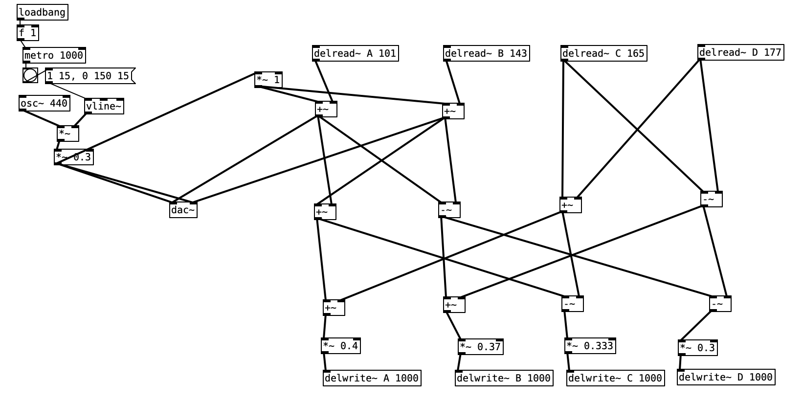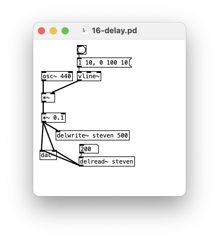 delay is an object that repeats whatever message it receives after a certain number of milliseconds.N.B., delay is not an audio delay, these work differently.
