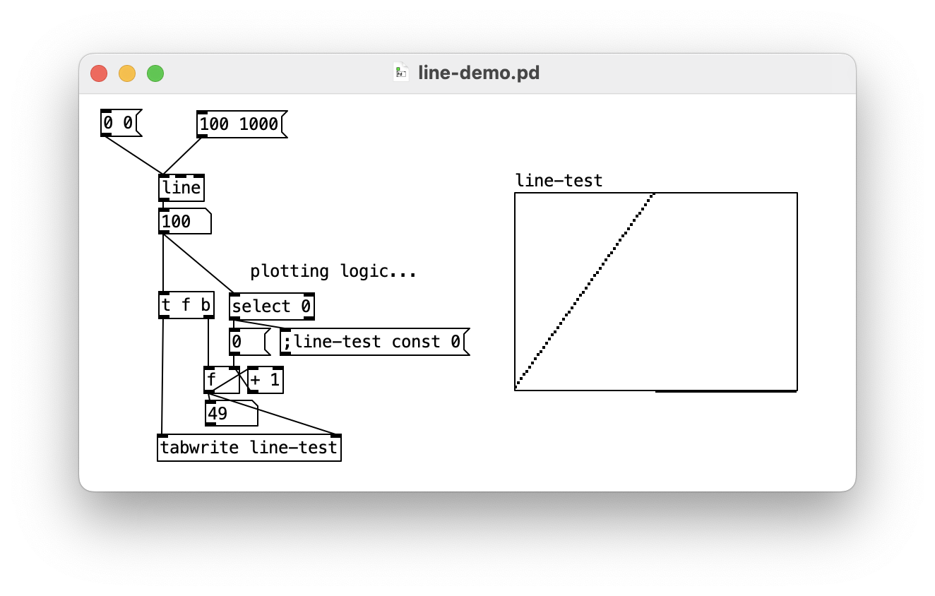 line is a slope generatorline~ vs line?Pd has two kinds of “connections” between objects: